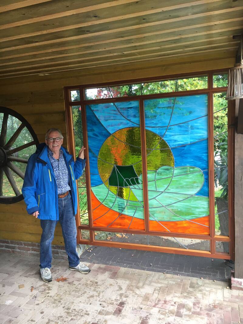 deze twee ramen uit de Oosterkerk in Alten gerestaureerd en in lichtbakken geplaatst en staan nu bij ons.