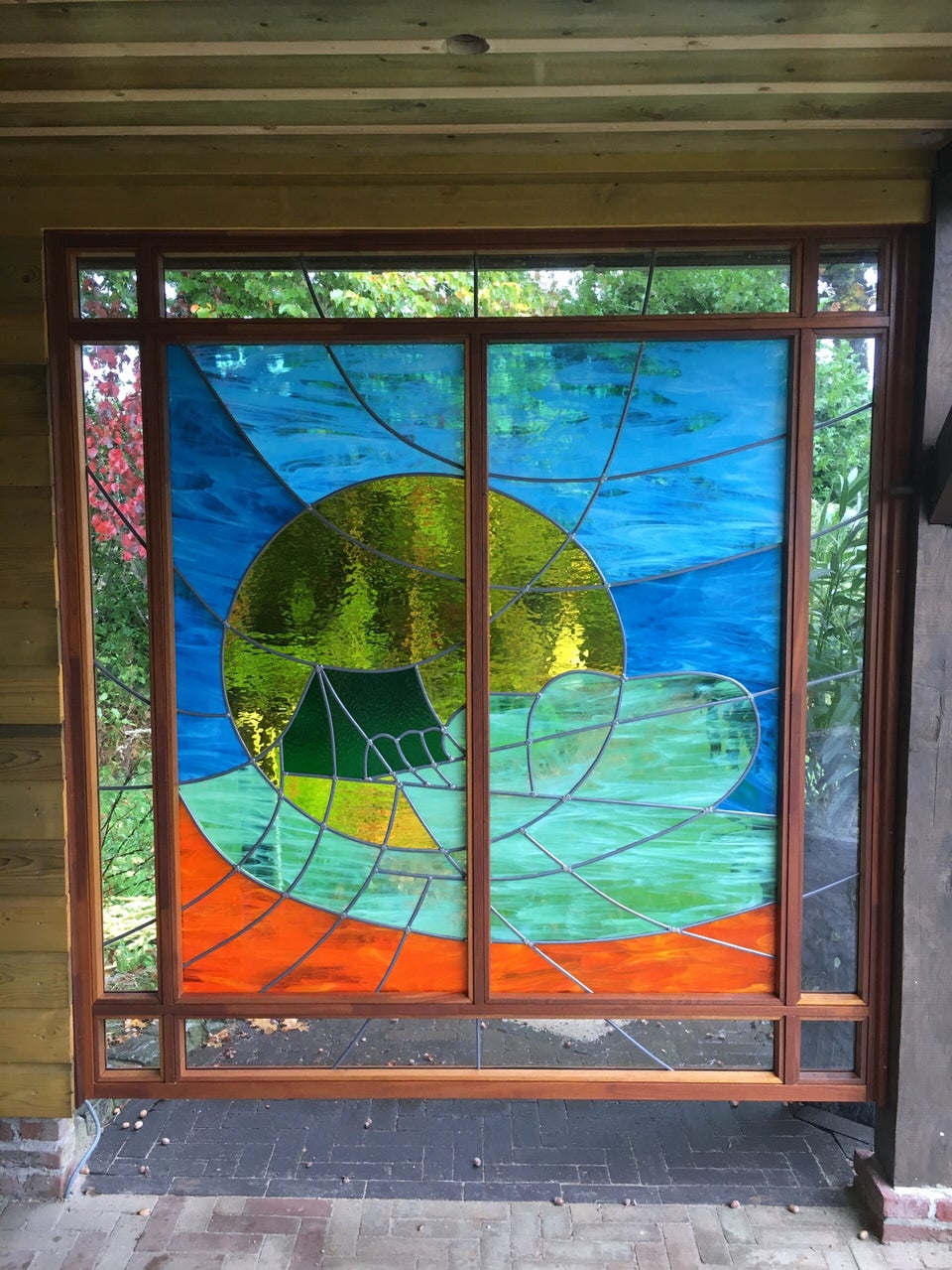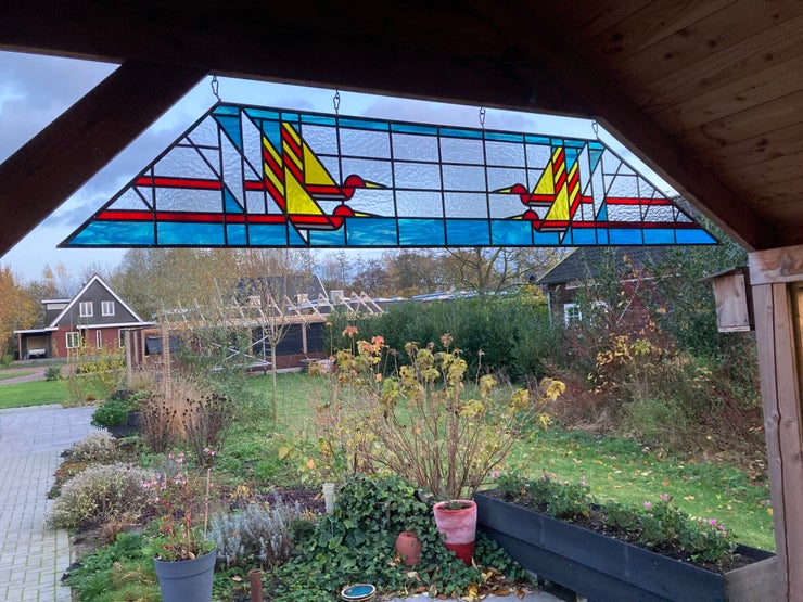 VOGELVLUCHT - glas in lood - 2 hangers onder terras