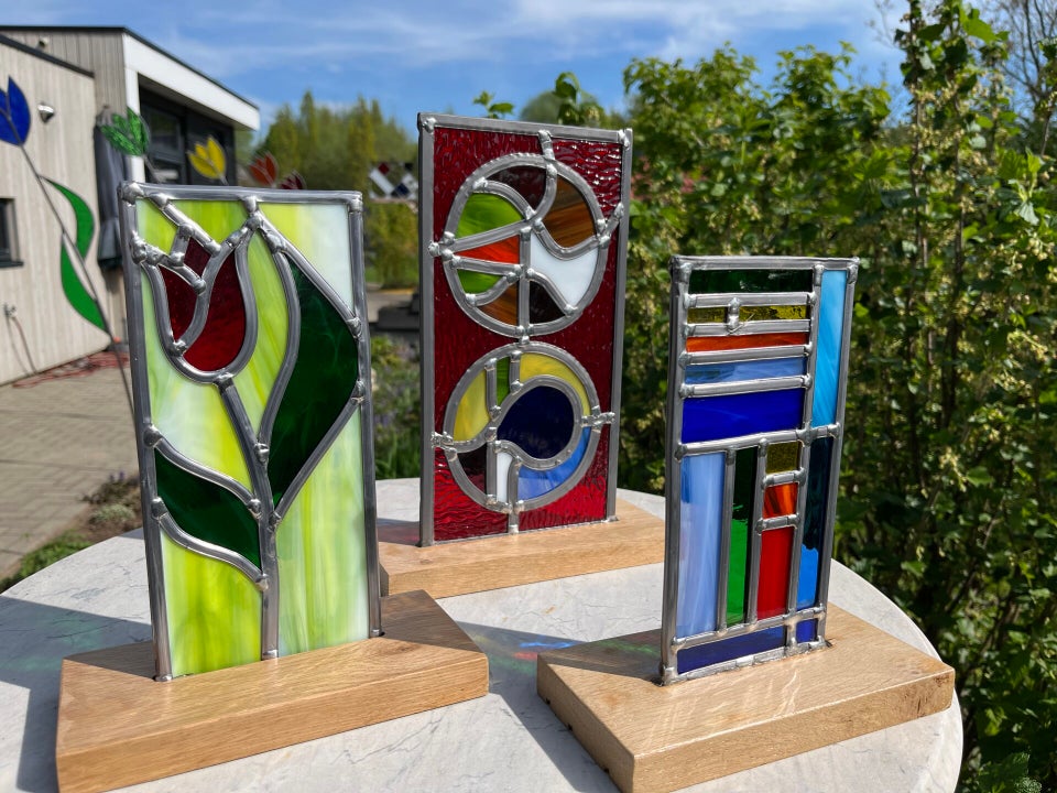 glas -in-lood cadeau 20-30 cm op houten standaard vanaf €30,00