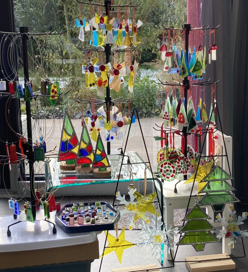 fuse kersthangers en fuse kettingen sieraden , ringen en glas in lood kerstboompjes enz.....