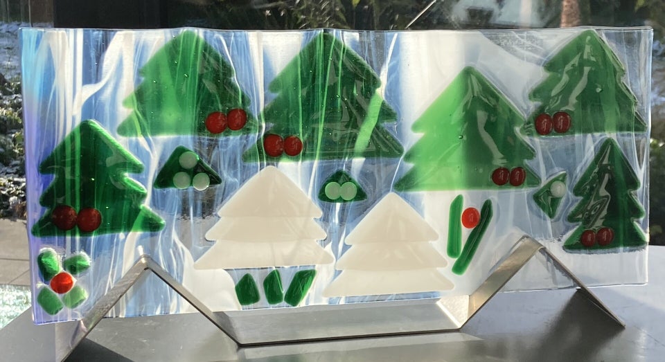 Glas in lood kerststal fusewerk narcissen en rood/groen en tiffany maria