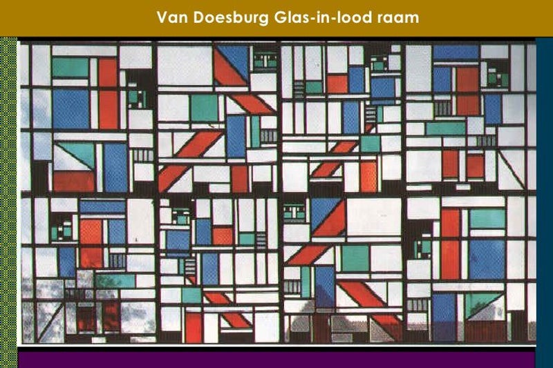 De glas-in-lood ramen van Theo van Doesburg zijn beroemd en zijn typerend voor de opkomst van de abstracte kunst, dat tot uiting kwam in de oprichting en uitgave van een blad “DE STIJL” waarvan Theo van Doesburg in 1917 medeoprichter was.